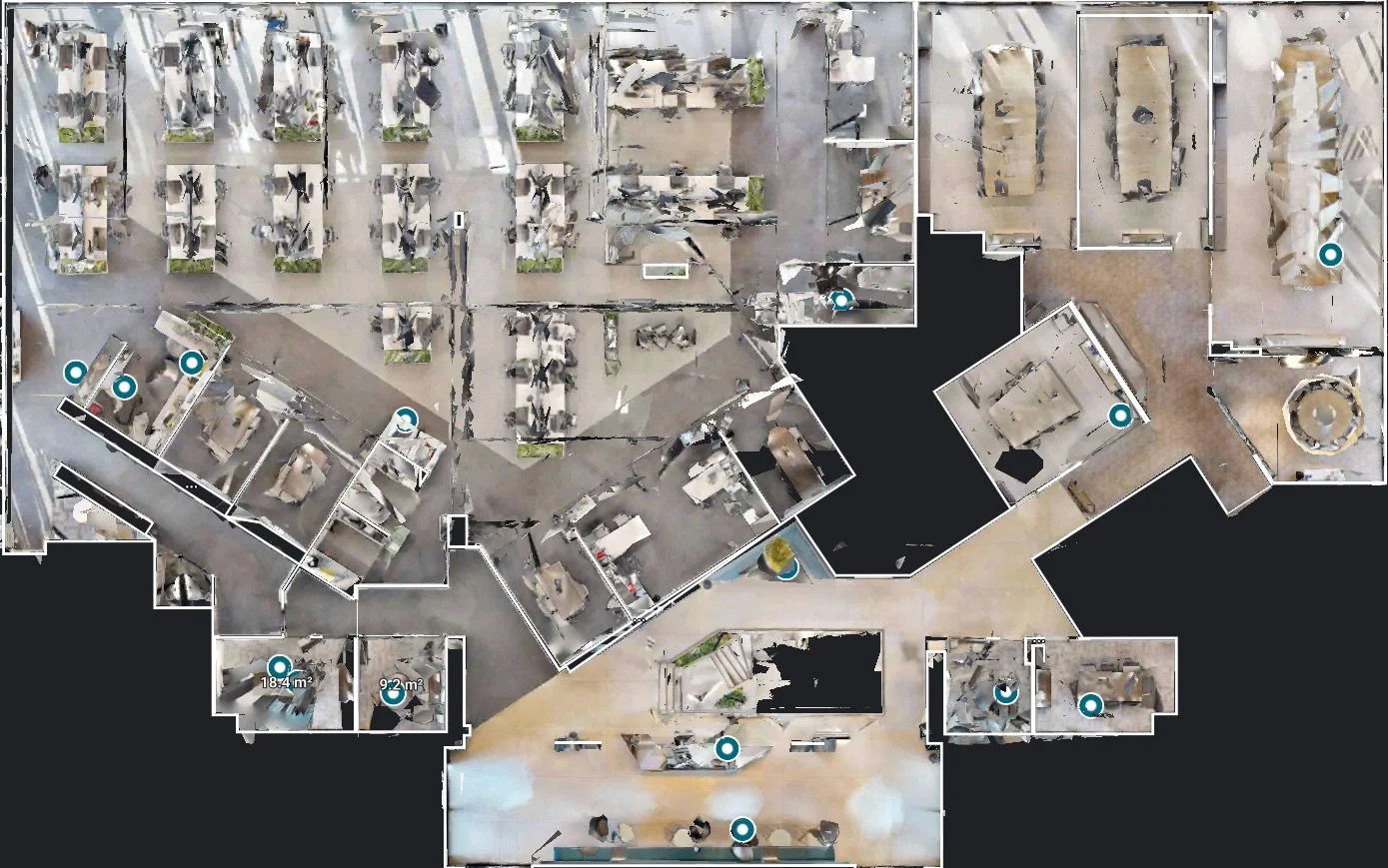 Captured using cutting-edge Lidar camera technology, the Digital Twin allows project managers and contractors to visualize potential design interventions and understand the existing space more comprehensively. Additionally, it facilitates the creation of precise 'as-built' CAD plans, particularly beneficial when no CAD plans are available, offering valuable support throughout the design and fit-out process.